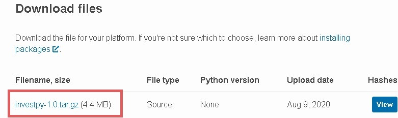 - Investpy = investing.com 에서 data를 불러오기 위해 사용할 라이브러리