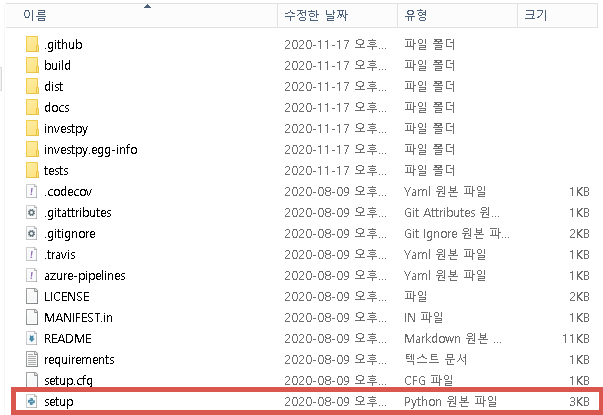 - 이후 명령 prompt를 열어서 위에 표시된 'setup.py'파일이 있는 경로로 들어가서