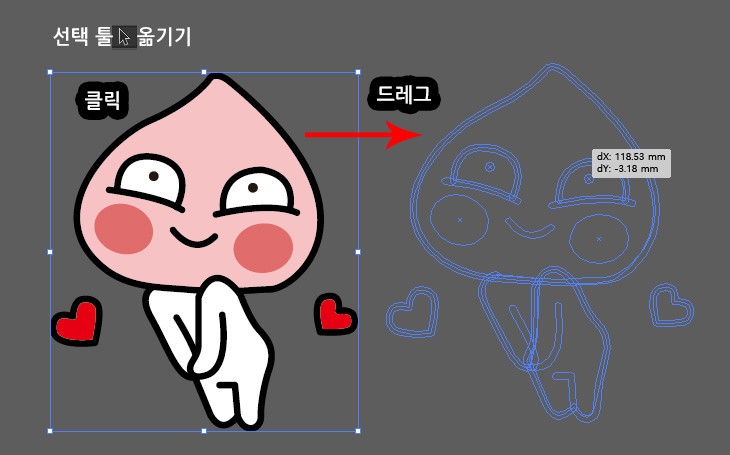 드래그를 하기 위해 클릭함과 동시에 object가 마우스 위치로 조금씩 움직여 버리게 된다.