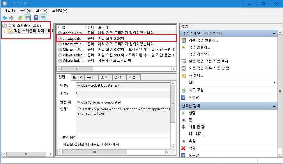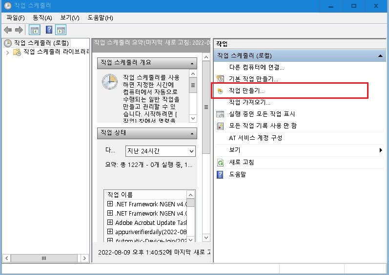 작업스케쥴러를 실행하면 아래와 같은 화면이 뜬다
