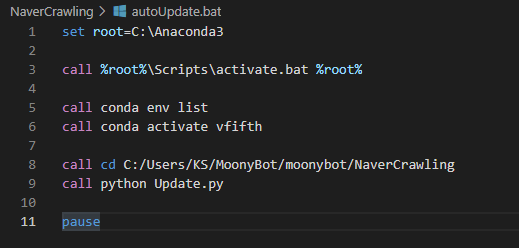 Anaconda 가상환경 구동 및 프로그램실행을 batch로 만들자