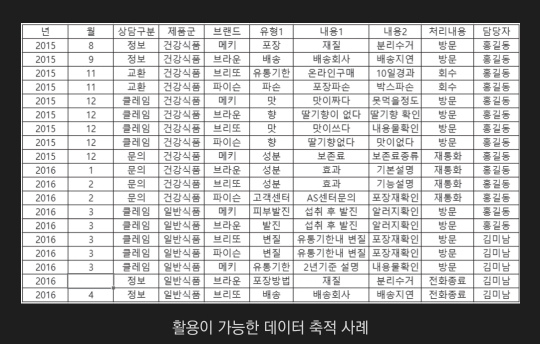 만약 고객 불만에 대한 내용을 케이스 마다 장문의 형태로 기록해 놓는다면, 추후에 이러한 정보를 활용하기 위해서는 각각의 고객 불만 사항을 '다시 읽고' 분류하는 작업을 한번더 진행해야 할 것이다.