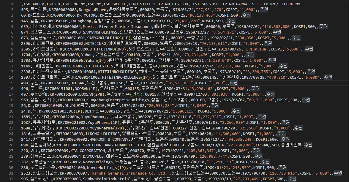 그 이유는 전 종목의 코드가 들어있기도 하고,
