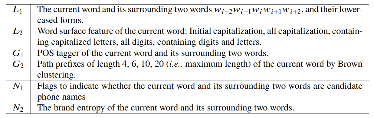 - CRF model에서 사용한 규칙(scheme) = YNO (Yes-No-Out) scheme