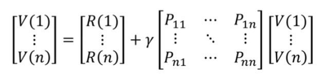 현재 상태에서 행동 A에 따른 보상 + Σ ( 상태에 도달할 확률 X 상태 가치 함수) * 현재가치 할인