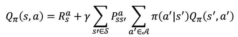 => 현재 행동 a를 하면 R만큼의 보상을 받고 + 이후 도달할 수 있는 모든 상태(s')로 부터의 기대가치의 합