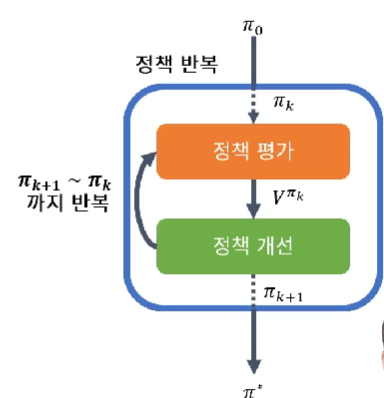 => 정책평가와 정책개선을 반복 => 수렴값 π*