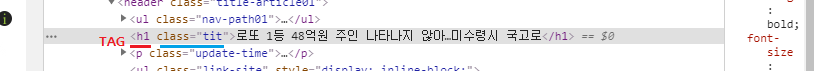 태그와 속성을 활용하여 제목을 불러와 제목의 text만 불러온다.