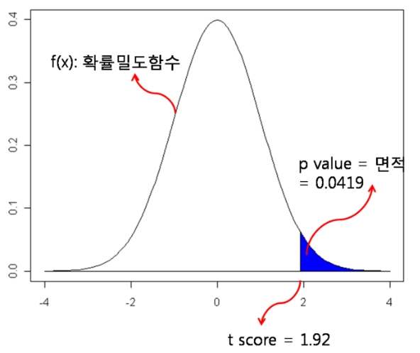 - t-value 값이 클수록 두 대상의 평균의 차이는 크다고 할 수 있다.